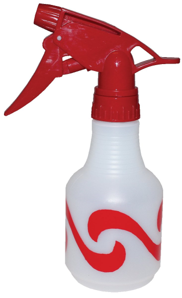 Natural HDPE bottle with assorted black, royal blue, or regal red wave graphics and matching Model 300 trigger sprayer. Can be ordered individually or assorted.